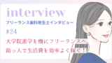 話している間に、どんどん良い表情になっていった高木さん。50代でも決して遅くない、むしろ、20代や30代よりも切実に、他のキャリアの可能性を広げる必要があるー。高木さんのお話には、とても身につまされるものがありました。1人の歯科衛生士としてこれからの若手のためを思う親心のようなものも感じ、心があたたかくなりました。ますますのご活躍を応援しています!