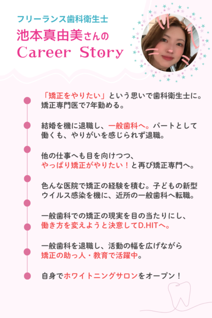フリーランス歯科衛生士さんにインタビュー第34回は、矯正をメインに26年のキャリアを積んできた池本真由美さんです。