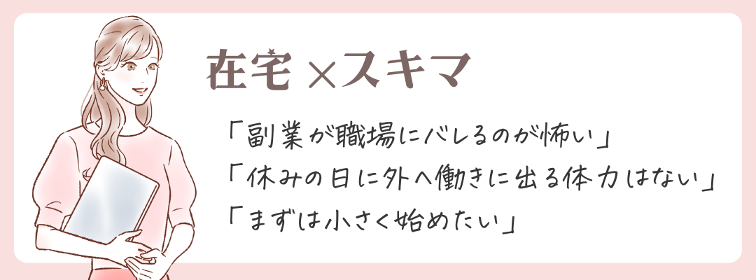 空いた時間で副業がしたい。そんな歯科衛生士さんに一番選ばれているのが、在宅×スキマ時間型の副業です。このタイプは、職場と切り離して始めやすいのが特徴。