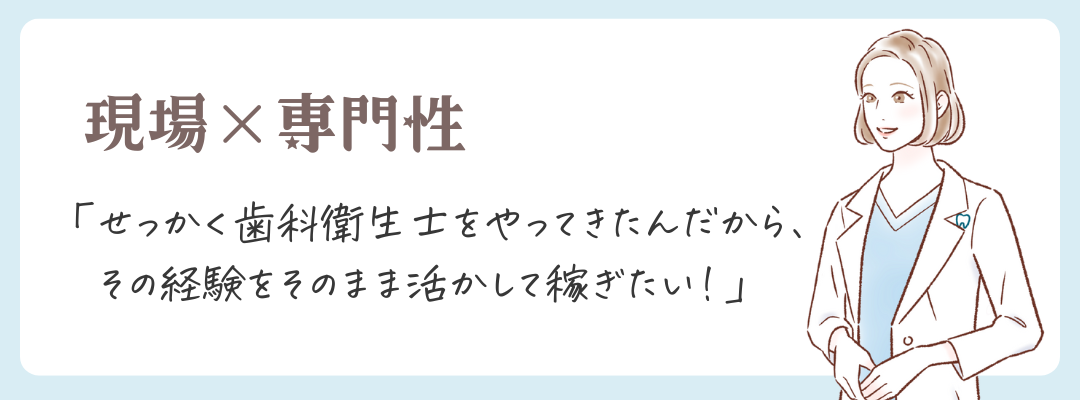歯科衛生士の資格と経験を活かして稼げる仕事は、こんなにたくさんあるんです。ニッチなところにこそ、市場は広がっています。