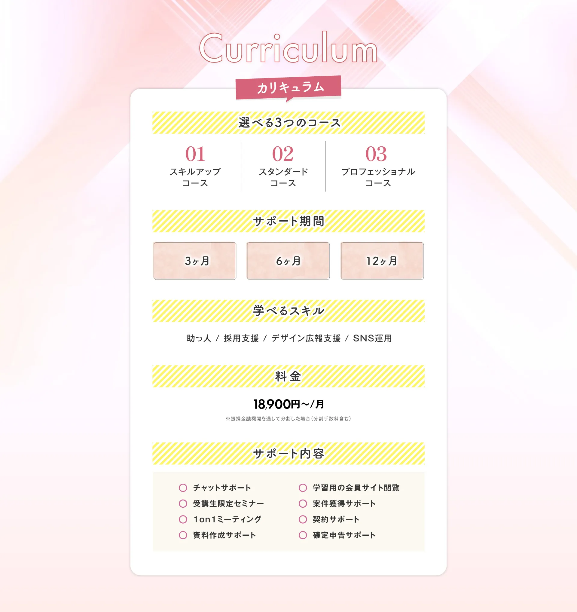 あなたのライフスタイルに合わせてオリジナルのカリキュラムを組みますのでご安心ください。