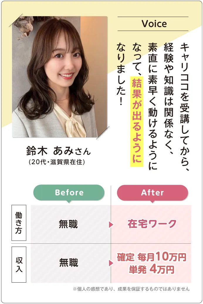今あなたがしているお仕事にそのまま掛け合わせてオリジナルの働き方を一緒に考えていきますので、知識や経験がない方でも問題ございません。